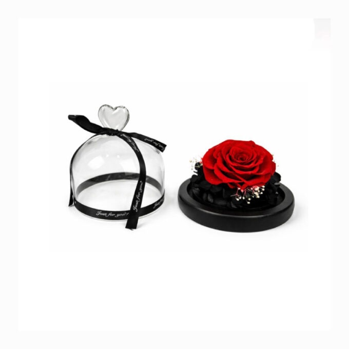 A timeless symbol of love and elegance, this Single Infinity Rose in Domed Glass features a premium preserved red rose displayed on a sleek black base and covered with a crystal-clear glass dome. Designed to last for years without water or maintenance, this luxury floral piece is a perfect romantic gift and an elegant décor item for homes, offices, or special occasions.