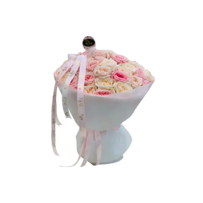 Celebrate grace and sophistication with our White and Pink Garden Rose Bouquet — a luxurious arrangement of creamy white and blush pink garden roses, artfully styled to embody timeless romance and refined beauty. Wrapped in delicate layers of pastel pink and white paper and finished with satin ribbons, this bouquet is a heartfelt expression of love, admiration, and gentle charm. Perfect for weddings, anniversaries, birthdays, or simply making someone feel truly special.